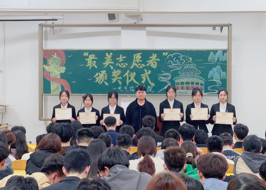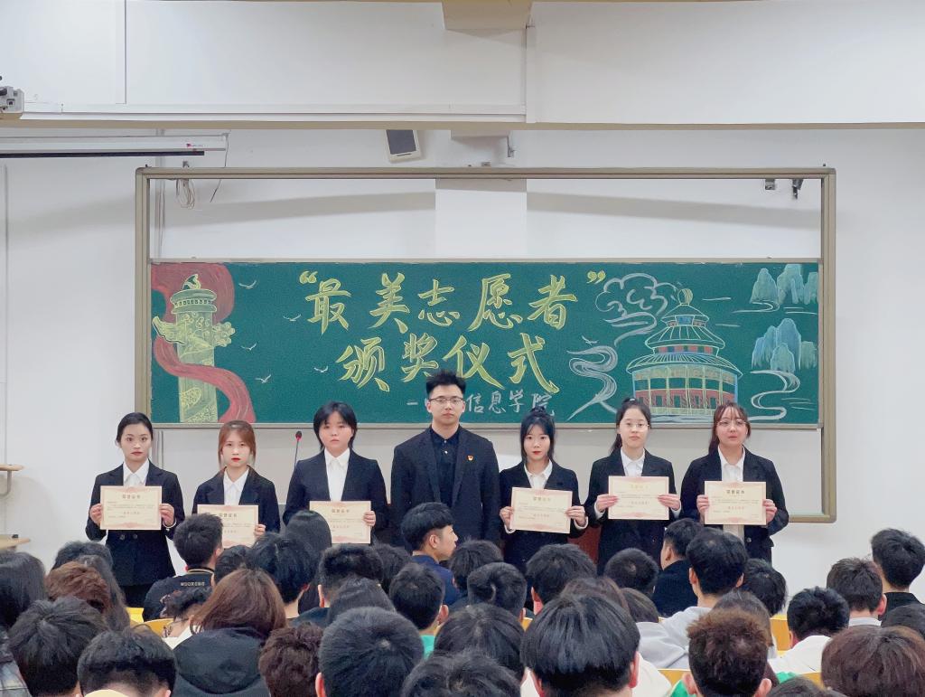 会议最后,与会老师为受到表彰的志愿者进行颁奖,并希望受到表彰的同学们能够再接再厉,充分发挥模范带头作用,同时,号召青年学生要以最美志愿者为榜样,为进一步推动学院发展和建设贡献自己的青春力量。