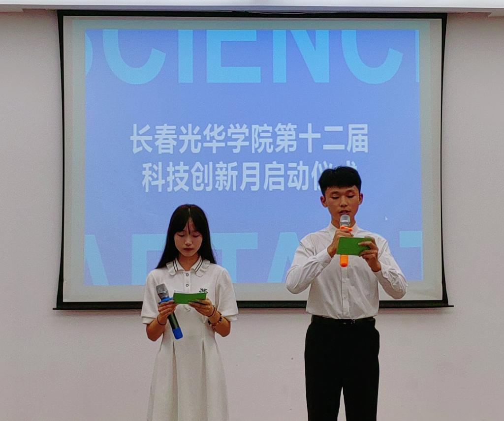 启动仪式首先以视频的形式回顾了我校历年来科技创新月活动所取得的成果。随后,张作岭处长为启动仪式致辞并宣布长春光华学院第十二届科技创新月活动正式启动。张作岭处长指出,学校高度重视学生创新精神与实践能力的培养,通过各专业社团助力培养学生创新意识和创新能力,努力为学生搭建更广阔的科技创新平台,同时,鼓励广大学生积极参加科技创新活动,把所学的专业知识应用于实践,奉献于社会,通过科技创新实践促进专业知识的巩固和升华,努力把学生培养成高水平、高素质、高技能的复合型人才。