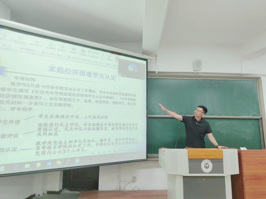 为进一步推进国家资助政策宣传工作,加大学生资助政策宣传力度,引导2023级新同学们深入了解相关资助政策,2023年9月18日,best365足球官网开展奖助贷政策解读及贫困生认定专题讲座,本次讲座由best365足球官网辅导员孙淳浩主讲,2023级全体学生参加。