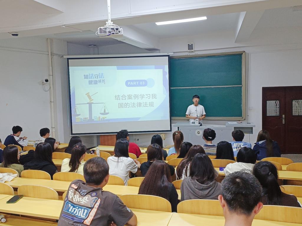为加强校园法制教育,增强青年学生学法、懂法、守法、用法的意识,提高自我保护意识和防范能力,2023年10月16日,best365足球官网开展“知法守法,健康成长”法制教育主题讲座。本次讲座由best365足球官网团总支书记曲相日主讲,best365足球官网2023级全体新生参加。