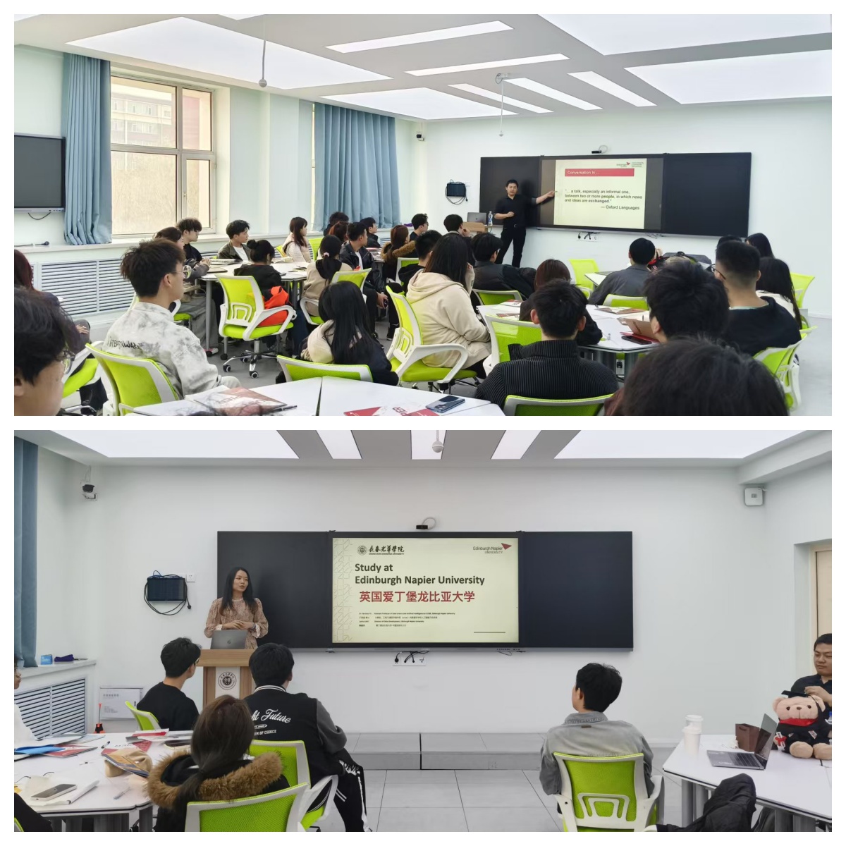 随后,爱丁堡龙比亚大学代表团实地参观了长春光华学院的工程技术中心实验室。当日,Yanchao Yu博士还为长春光华学院的学生代表们带来了一场精彩的英文公开课。