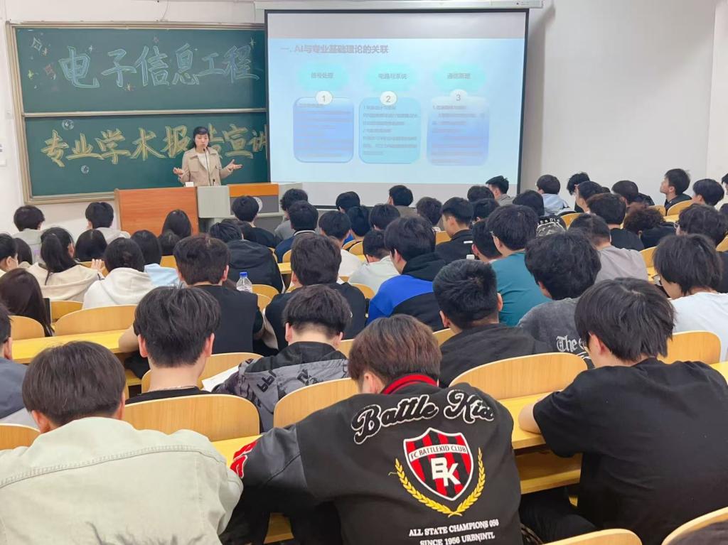 2025年5月19日,best365足球官网在二教320开展“从专业视角剖析AI的深度融合与应用”专题报告会。报告会由best365足球官网张启英教授主讲,2023级、2024级电子信息工程专业全体学生参加。