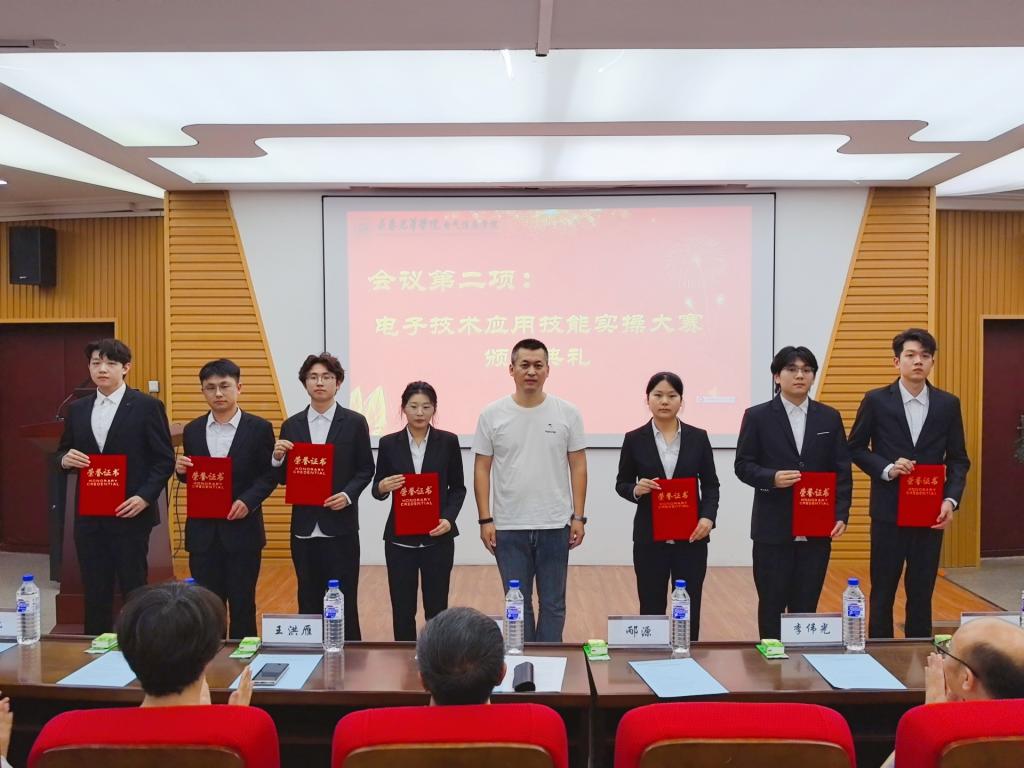 典礼上,王洪雁主任在致辞中对best365足球官网学生的专业素养和实践能力给予了高度评价,并对在电子技术应用技能实操大赛和数字创意设计大赛中获奖的优秀学生表示了祝贺。随后,与会领导为两大赛事获奖学生代表颁发了荣誉证书。