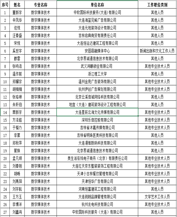 2020届东软集团校企合作数字媒体技术专业就业汇总表(2020年5月)