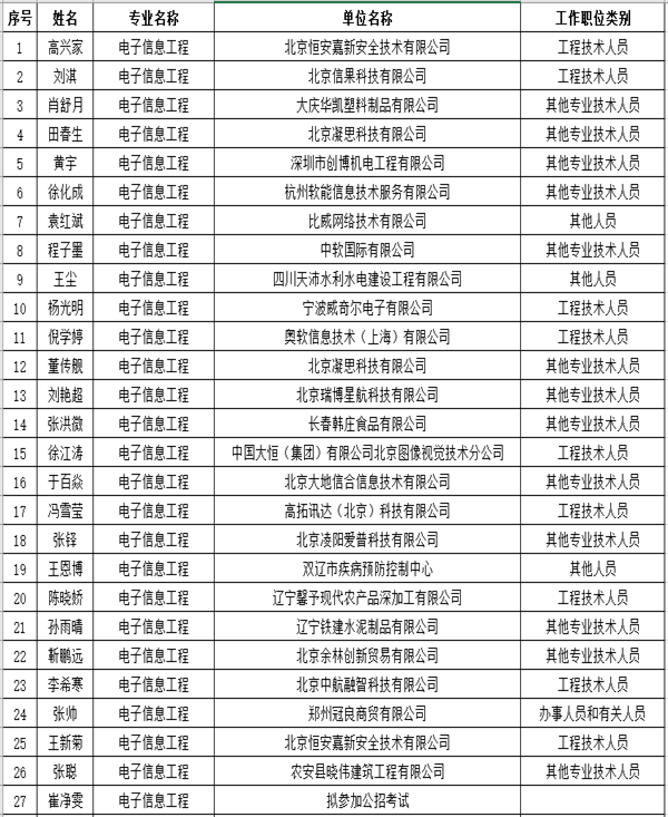 2020届北京凌阳校企合作电子信息工程专业就业汇总表(截止2020年5月)