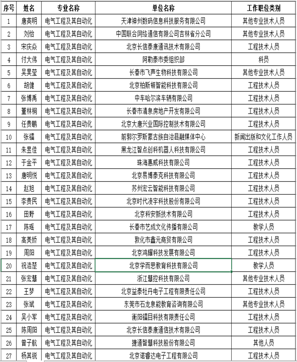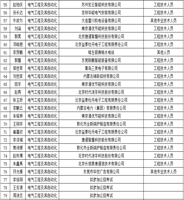 2020届柏斯顿订单班电气工程及其自动化专业就业汇总表(截止2020年5月)