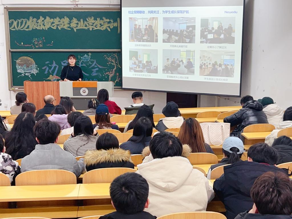 会议最后,党总支副书记李艳发表了讲话,对2022级共建专业的同学们给予了高度的赞扬和肯定,并回顾了两年多以来2022级同学们在校期间的学习历程和积极进取的精神风貌。同时,鼓励同学们要继续发扬努力向上的精神,勇于面对挑战,不断提升自我,祝愿2022级校企共建专业全体同学实训顺利、学有所得、学有所获。